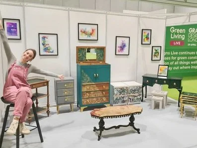 In April and May 2023 I attended Grand Designs Live Exhibition at the ExCel London. I was based in the Green Living & Sustainability Zone promoting upcycling and the circular economy whilst exhibiting a collection of my upcycled furniture pieces. I was also a workshop host, hosting numerous workshops across the 8 day event.