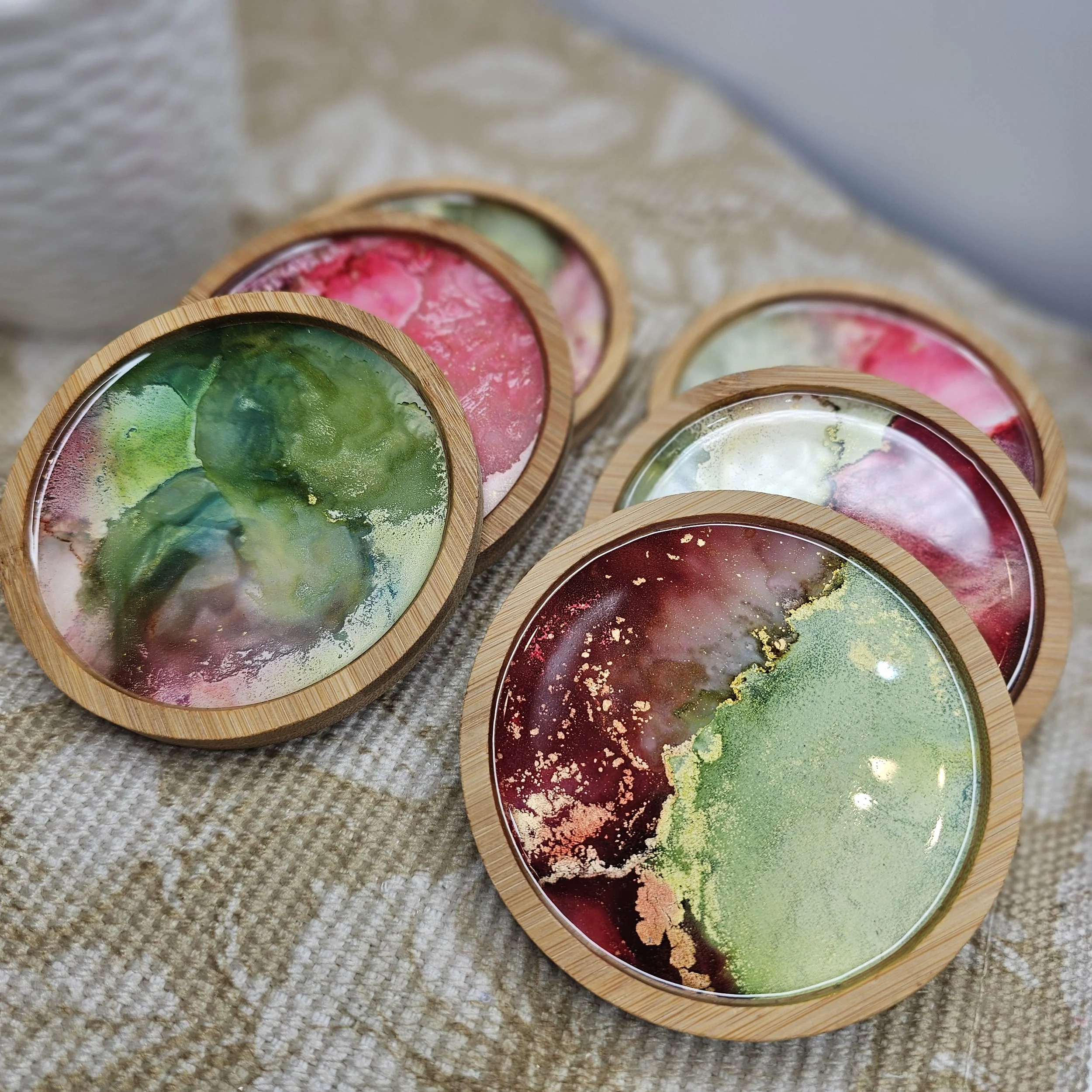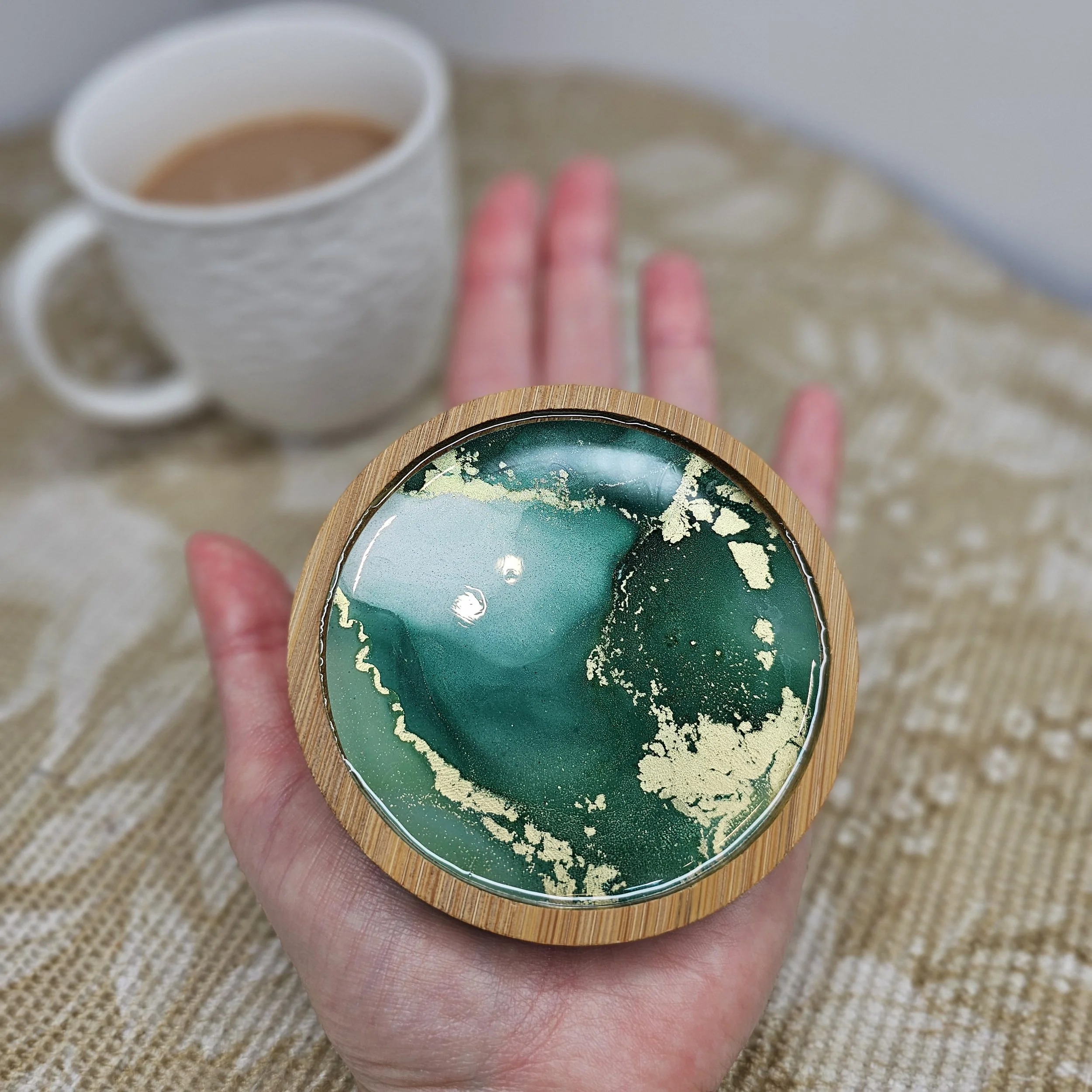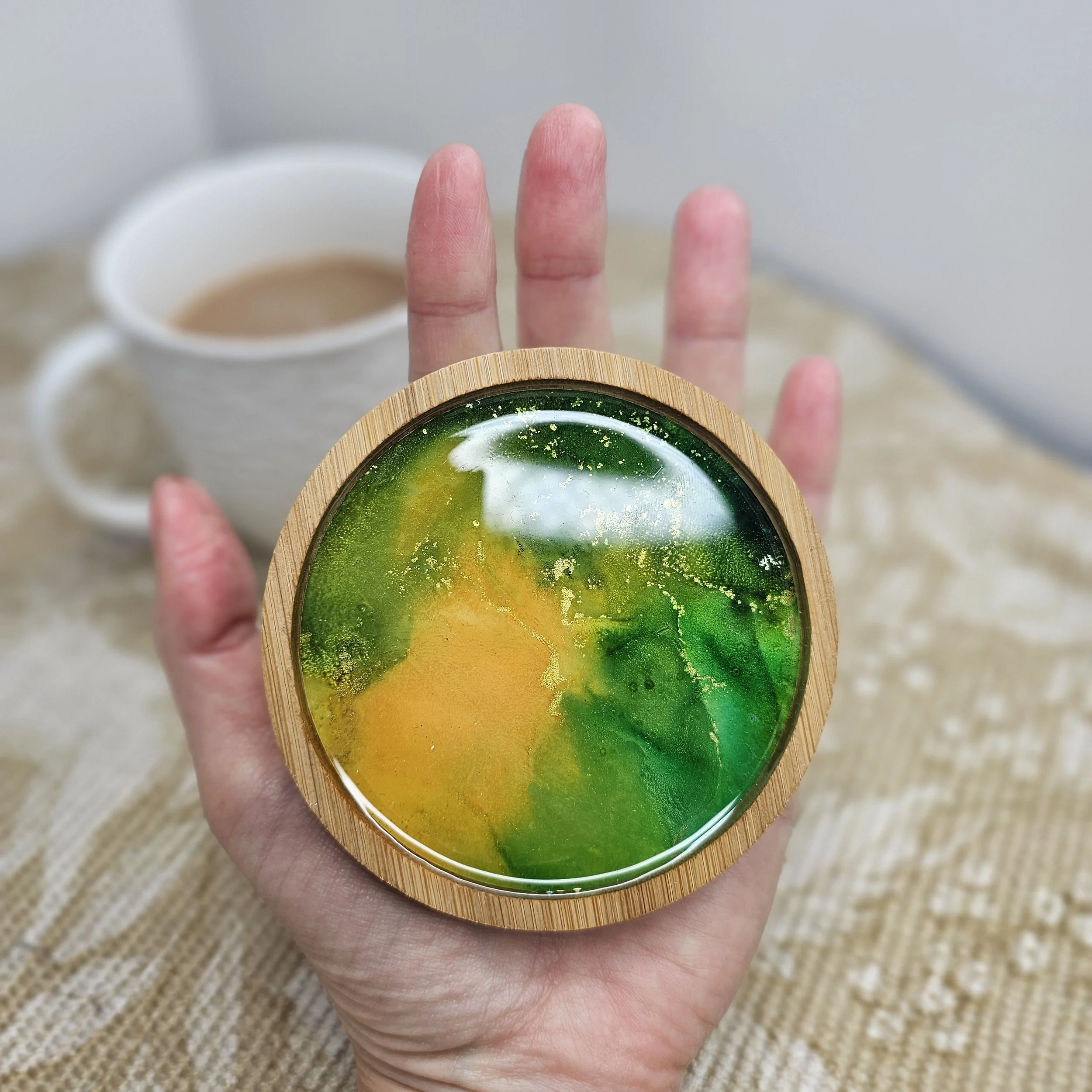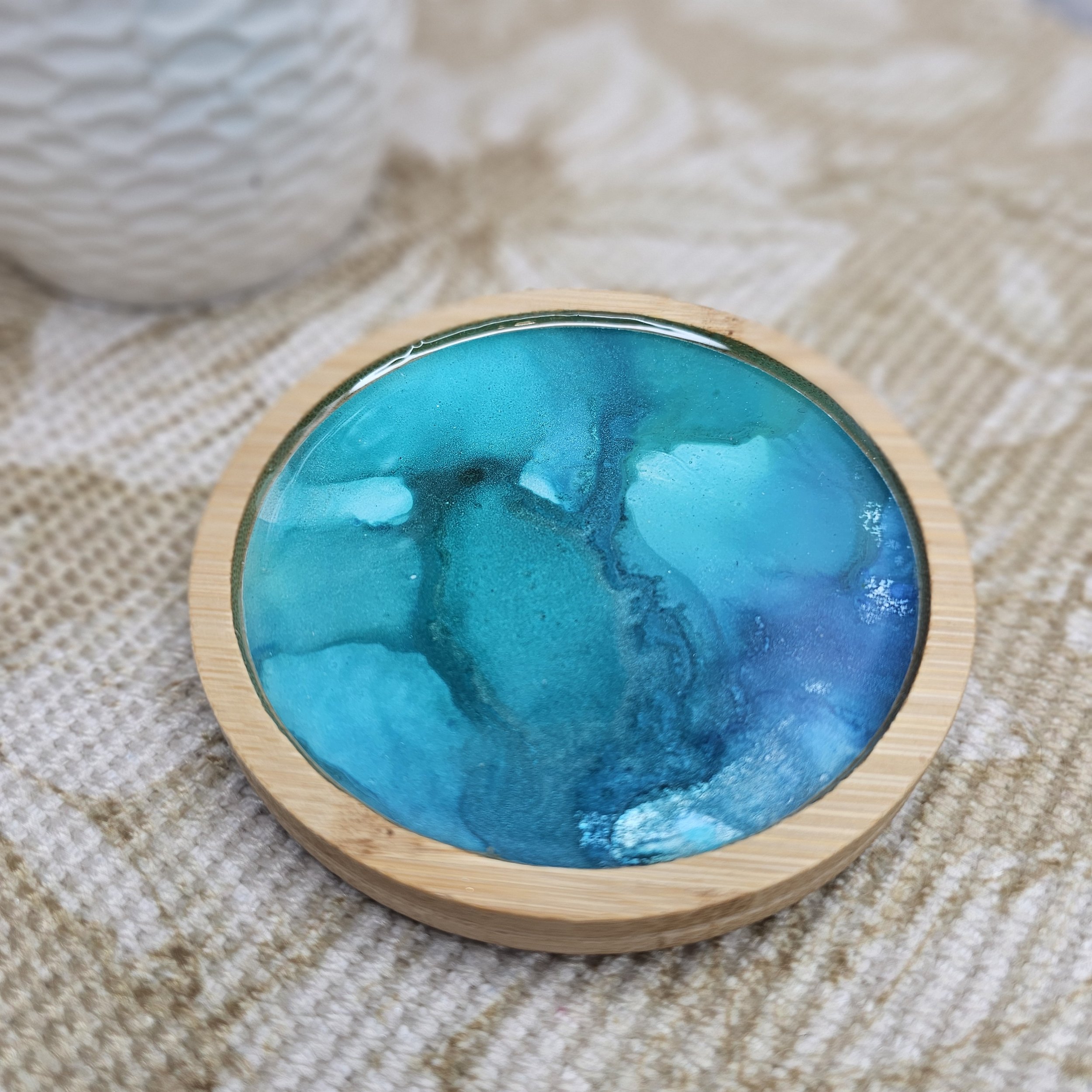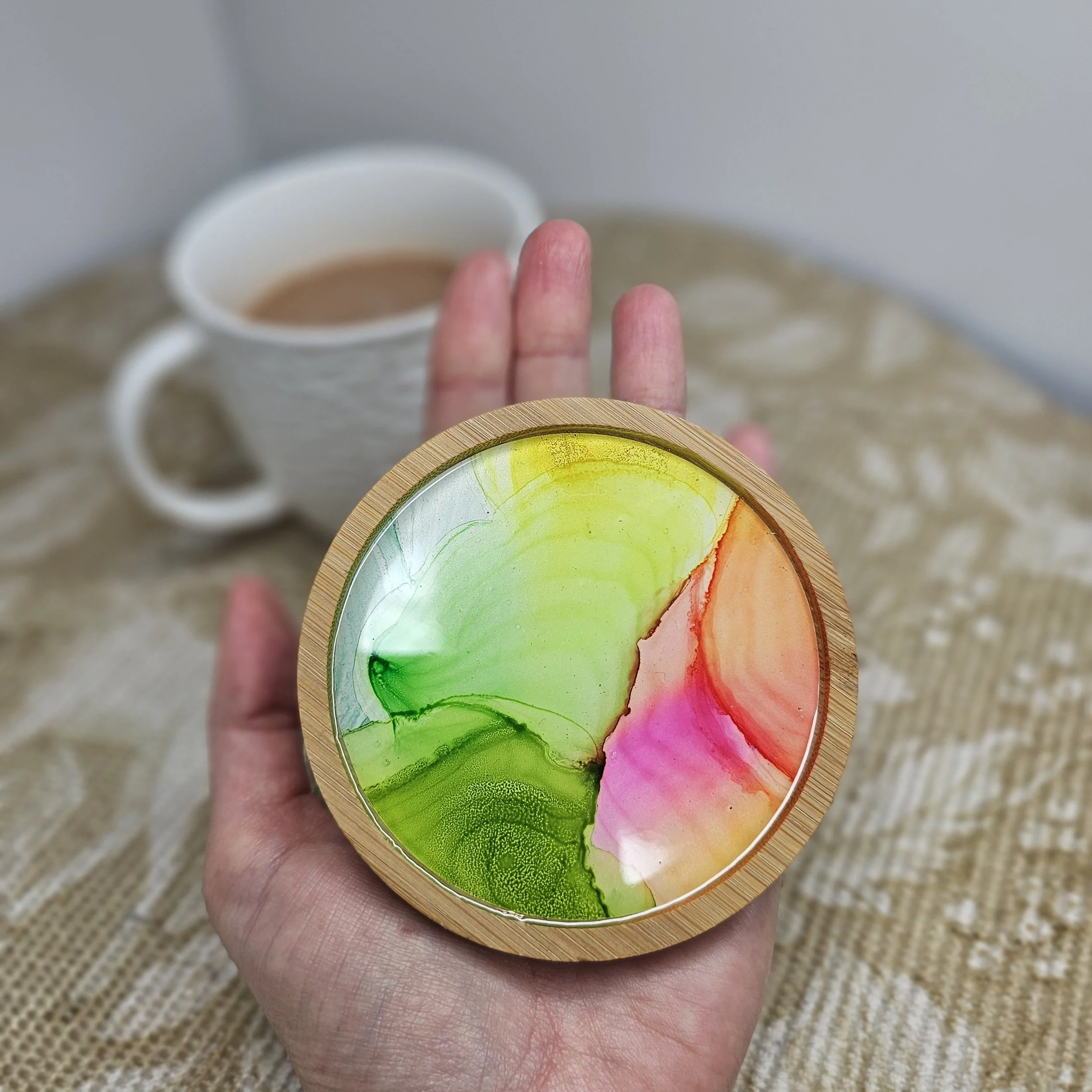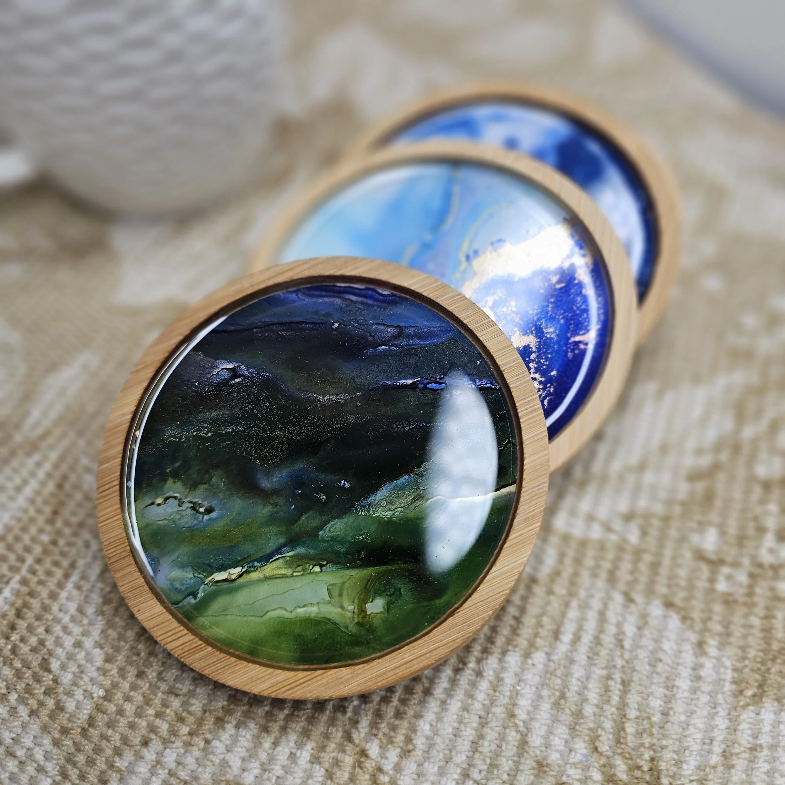 • Each 60mm glass ornament is a unique piece of art, hand-painted using vibrant abstract alcohol inks. They feature a gold cap and comes complete with a hand-tied satin ribbon, ready for display.
