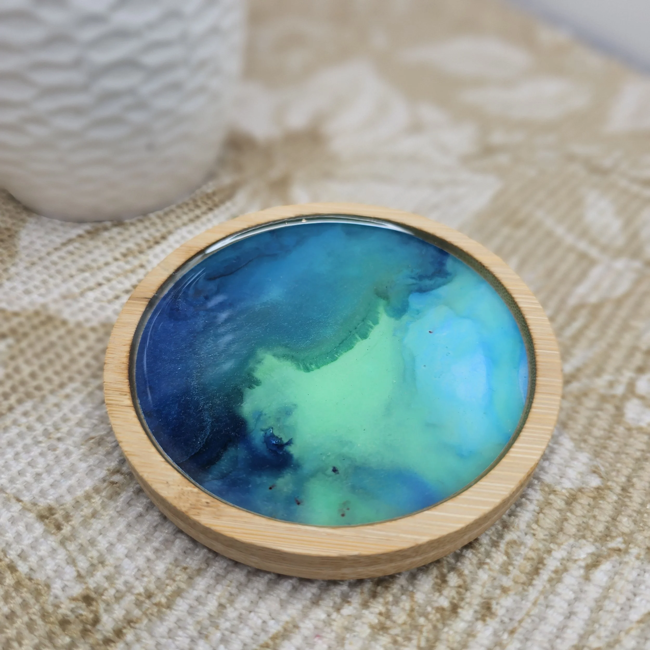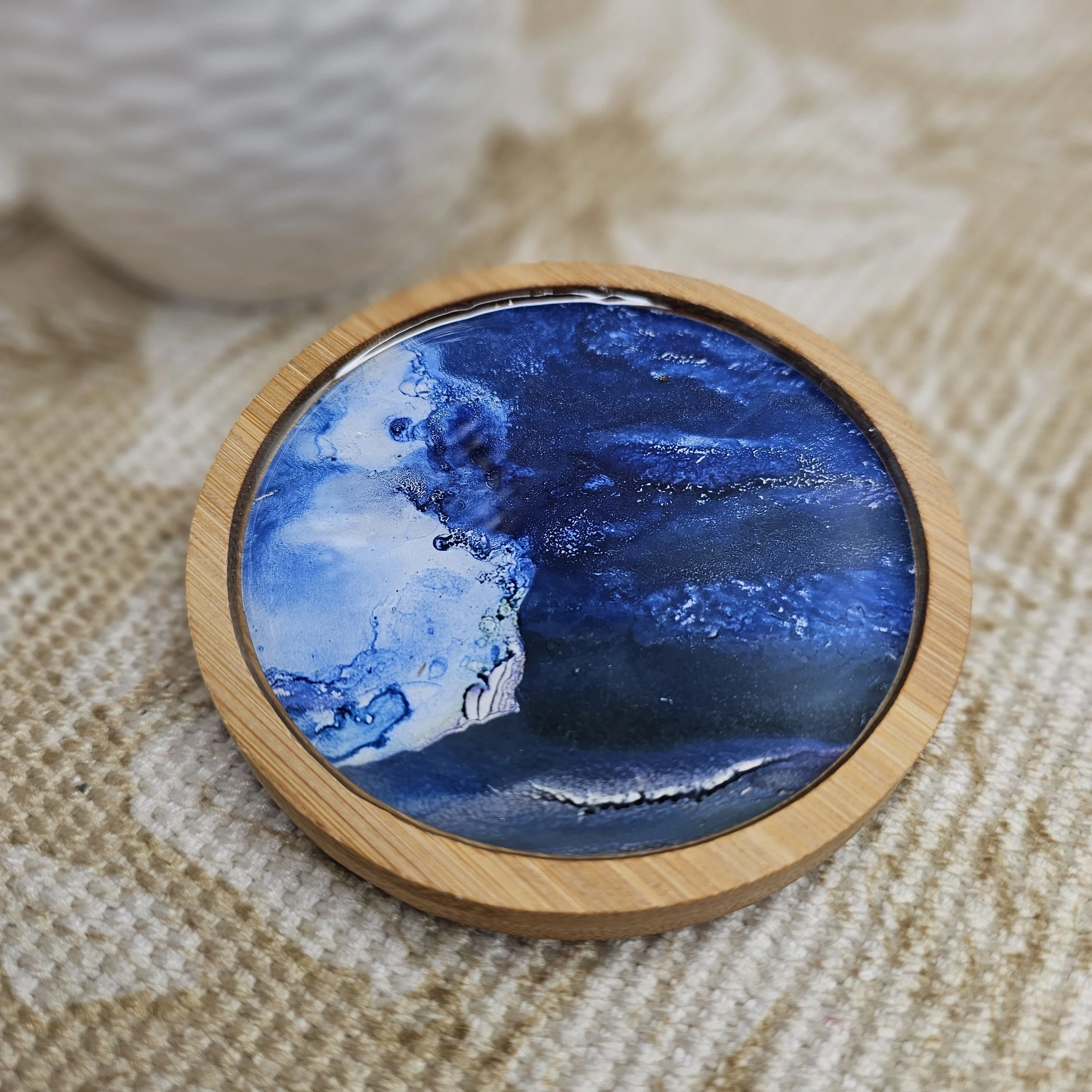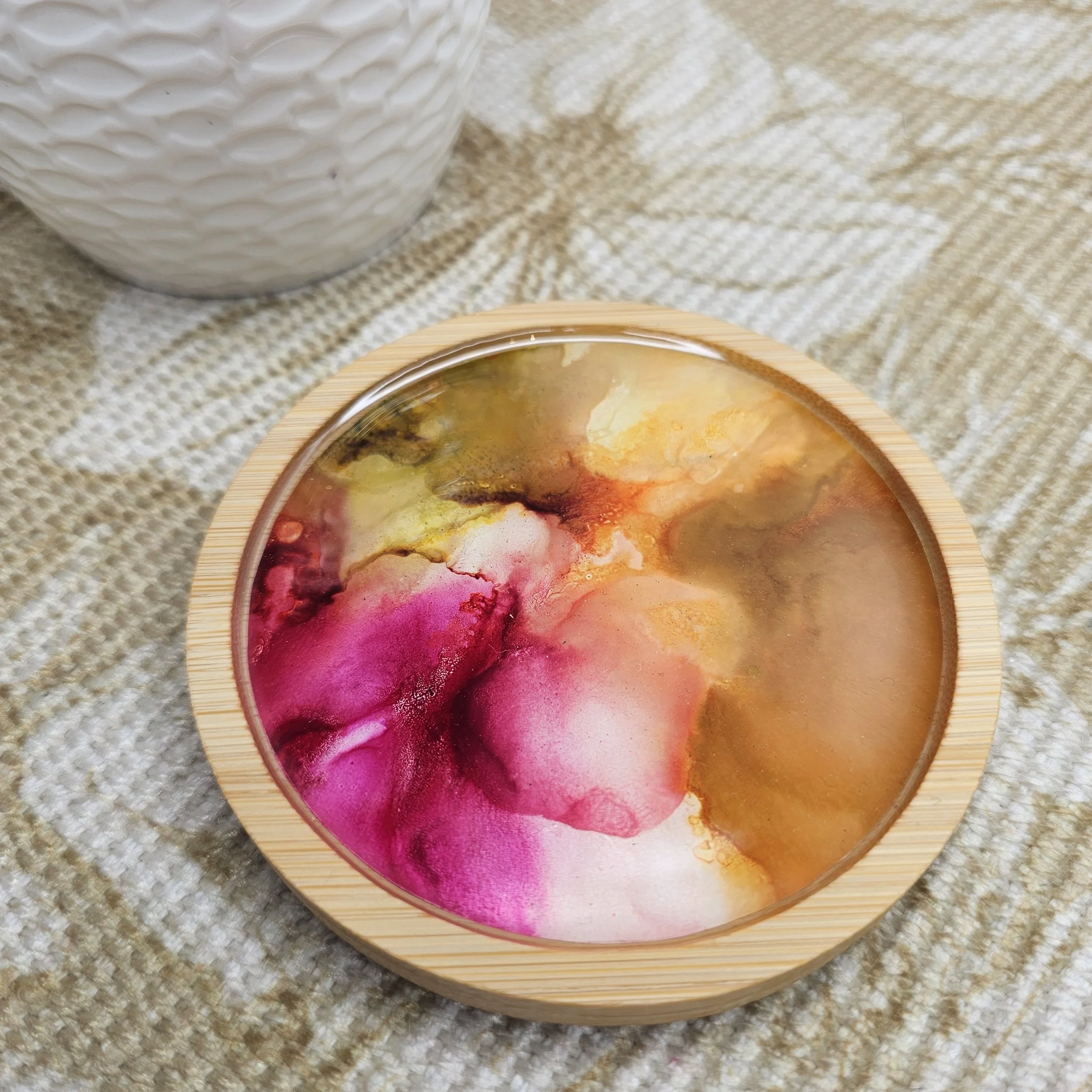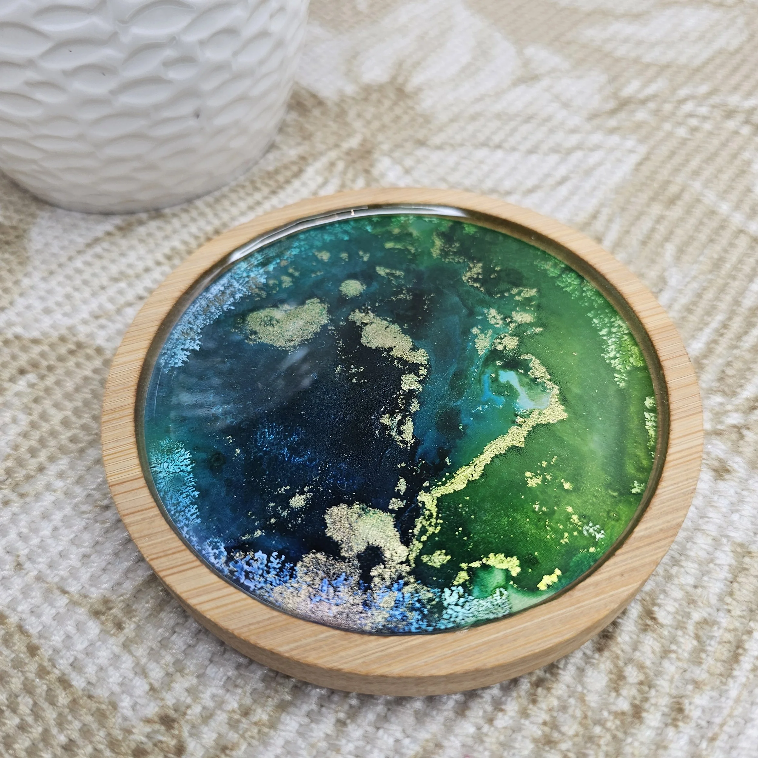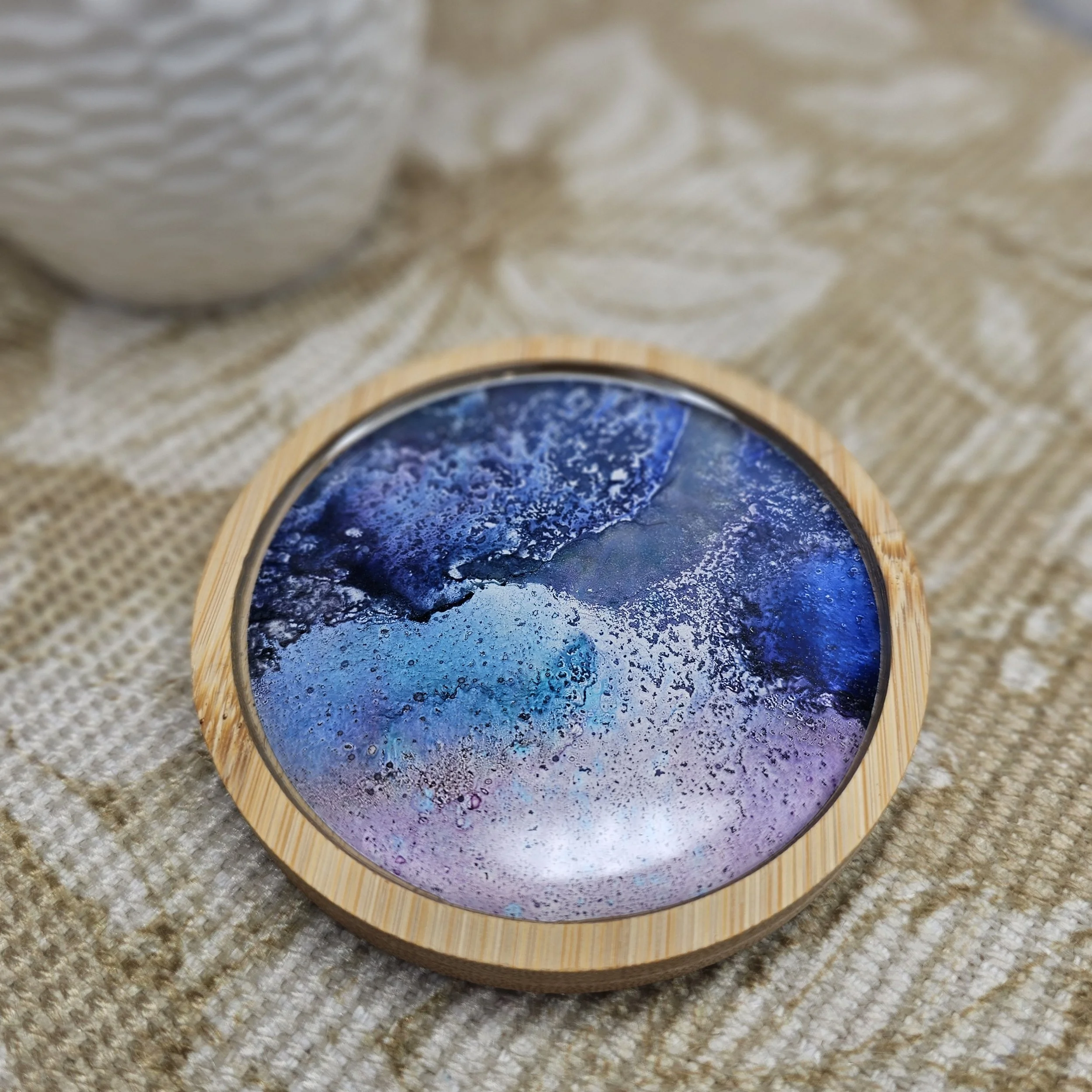 • Each 60mm glass ornament is a unique piece of art, hand-painted using vibrant abstract alcohol inks. They feature a gold cap and comes complete with a hand-tied satin ribbon, ready for display.