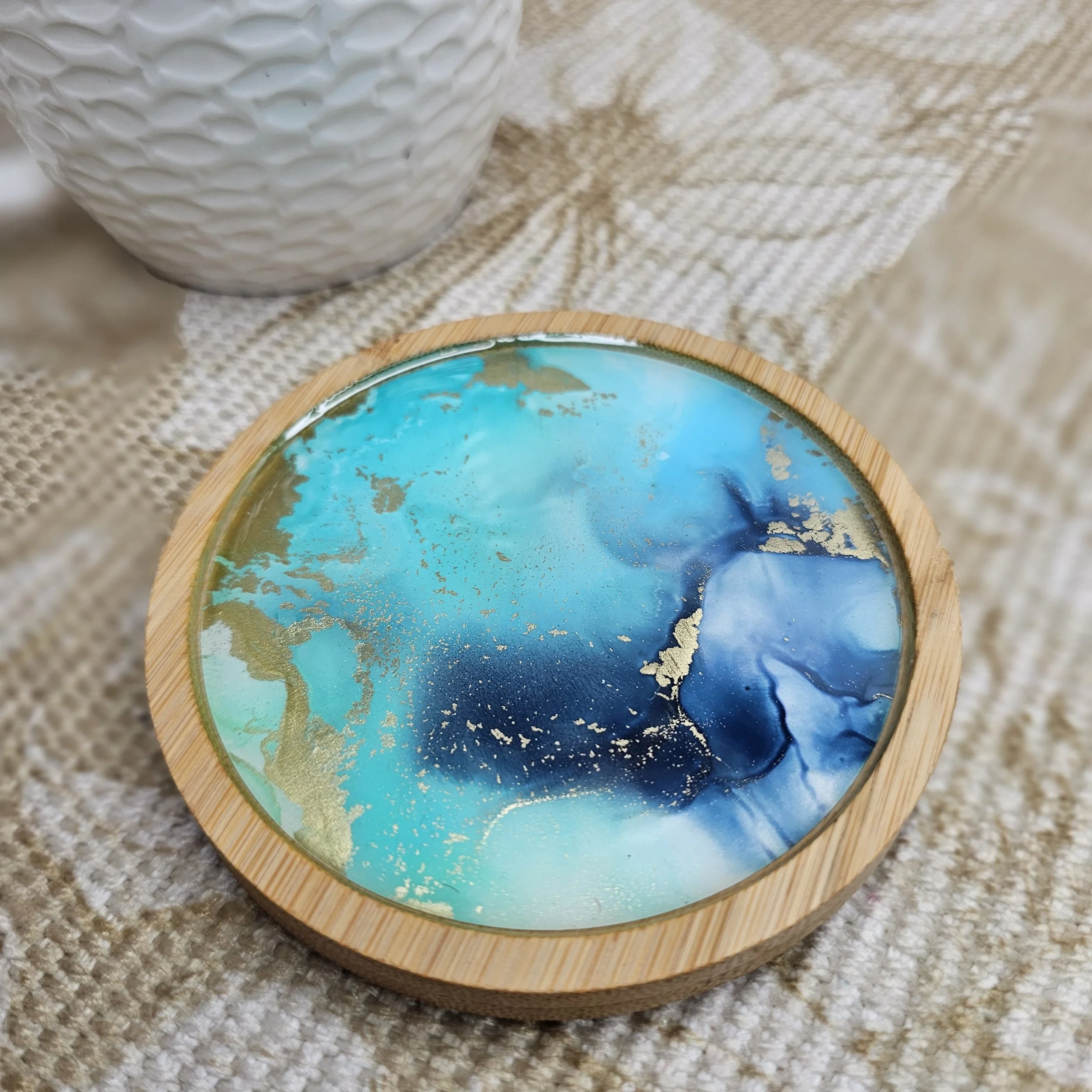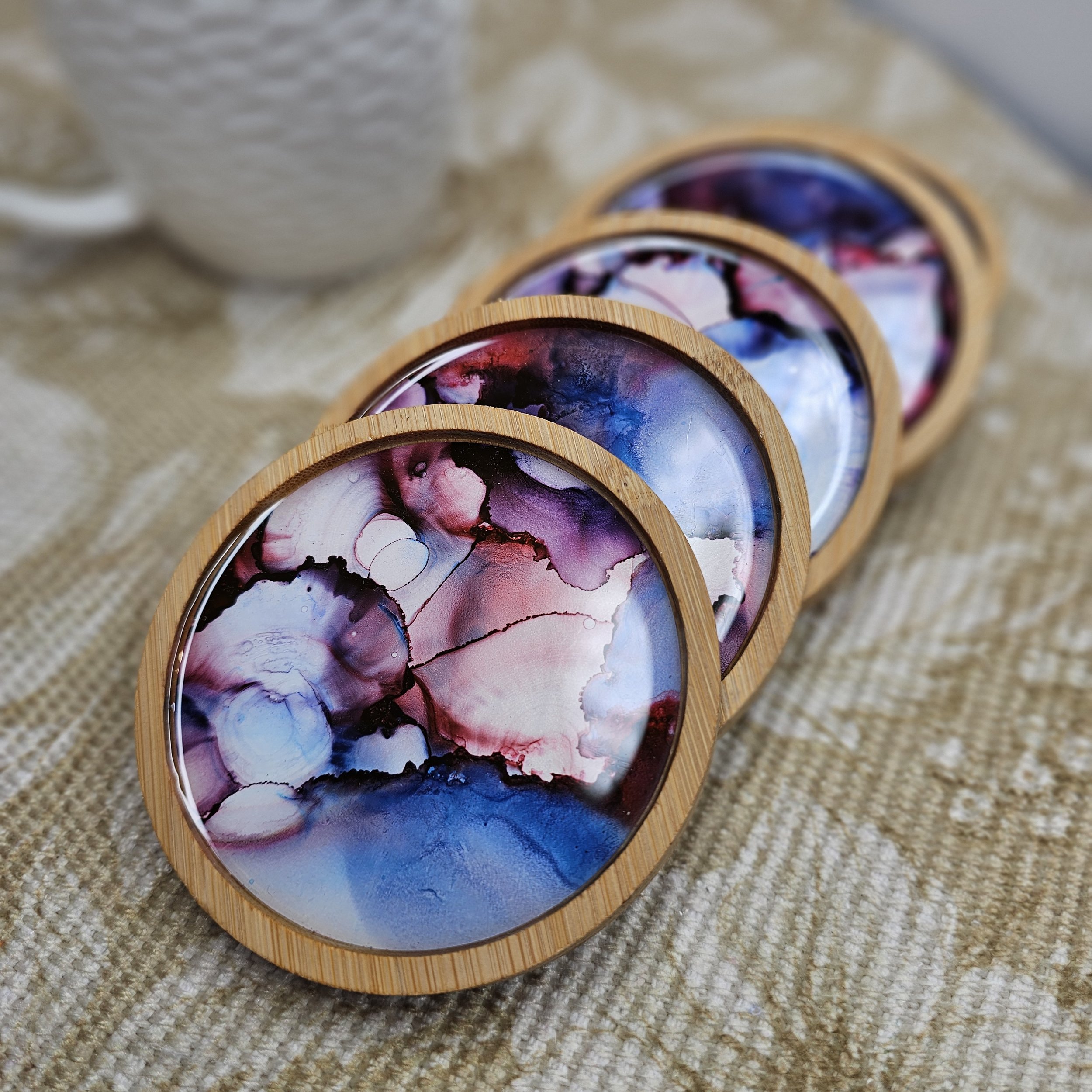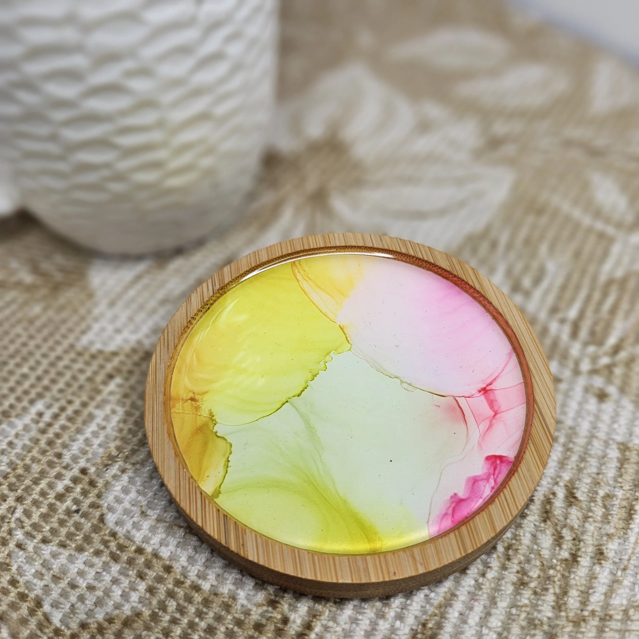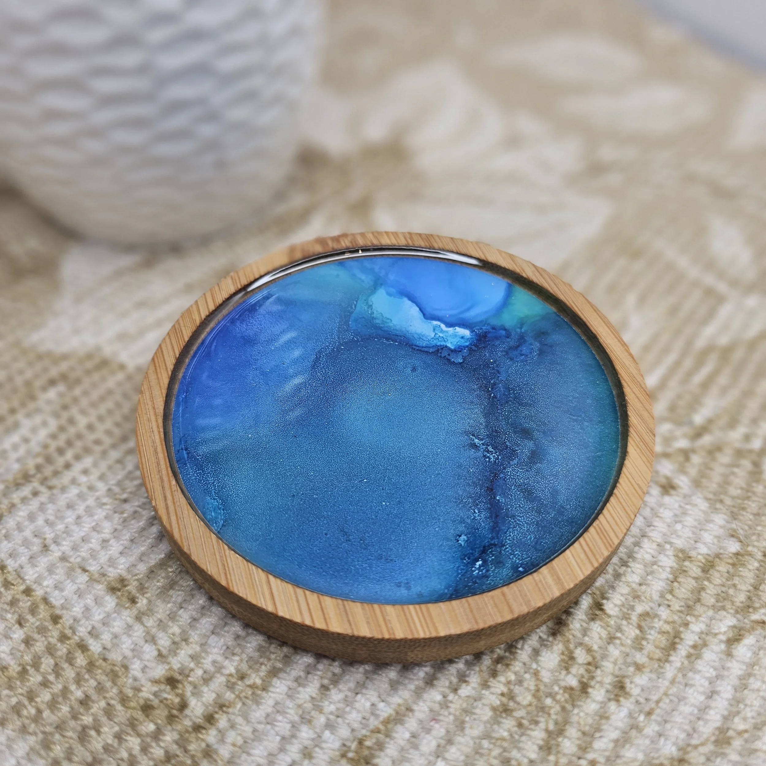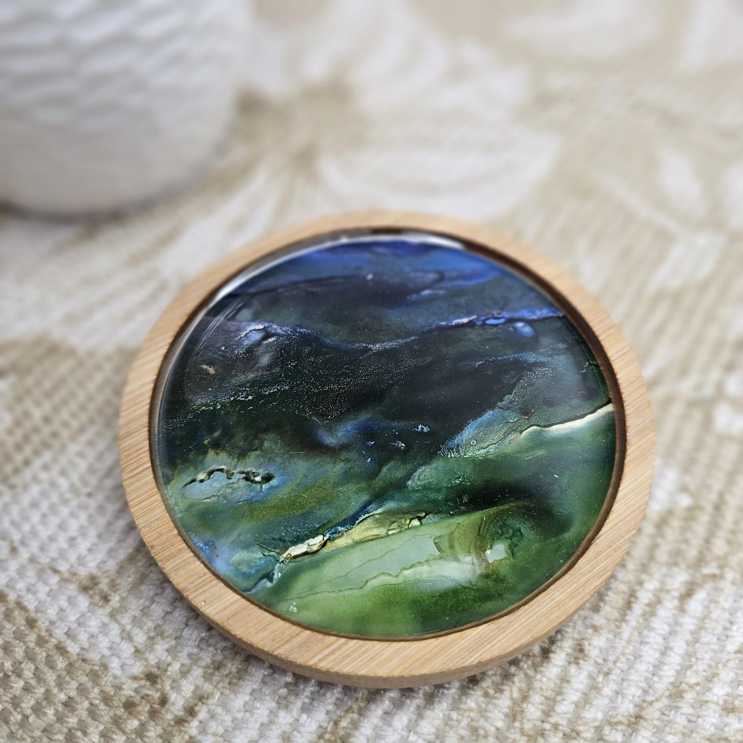 • Each 60mm glass ornament is a unique piece of art, hand-painted using vibrant abstract alcohol inks. They feature a gold cap and comes complete with a hand-tied satin ribbon, ready for display.