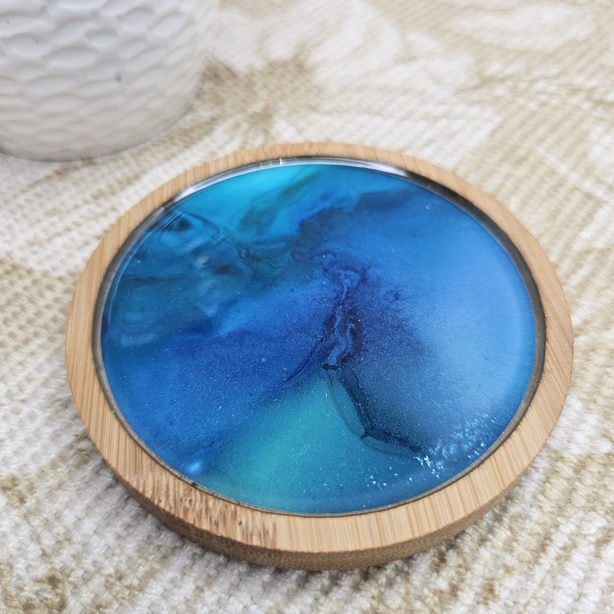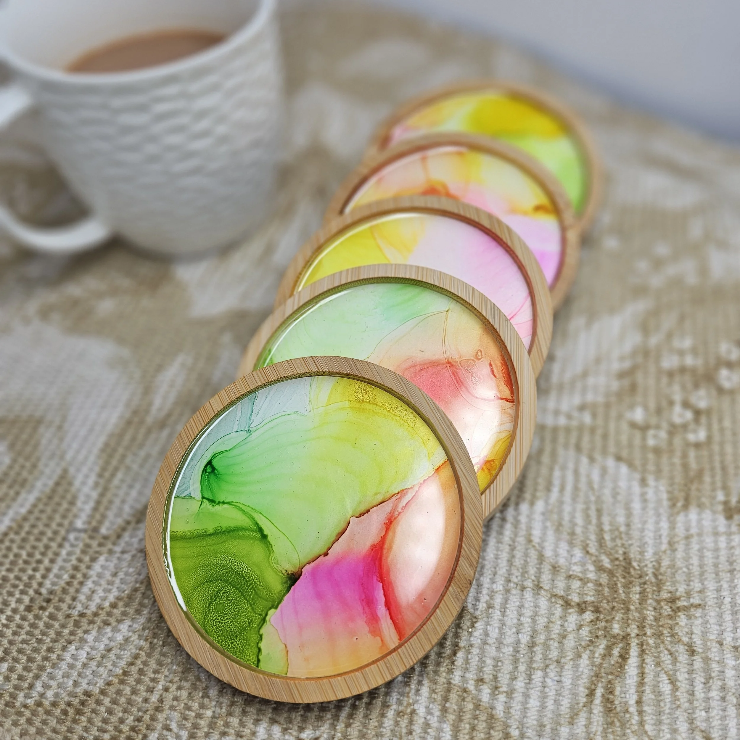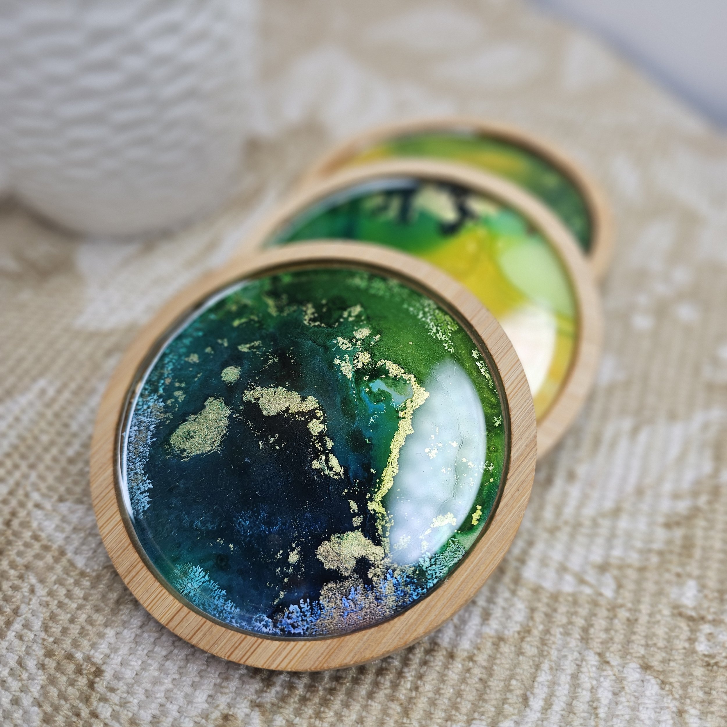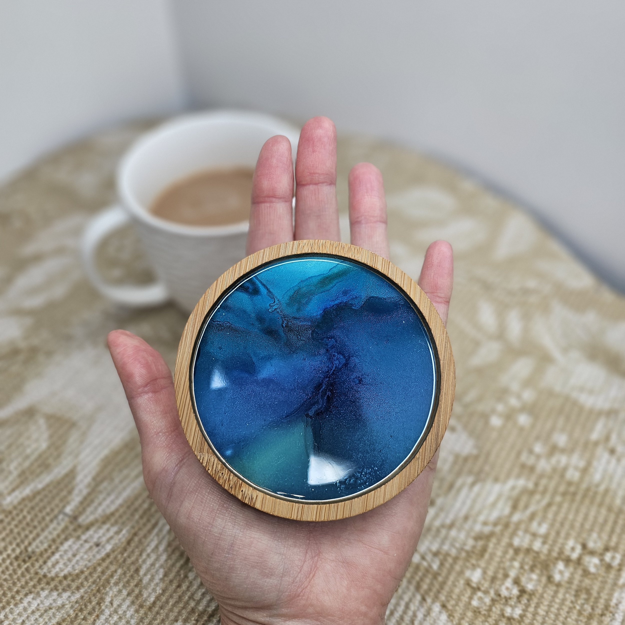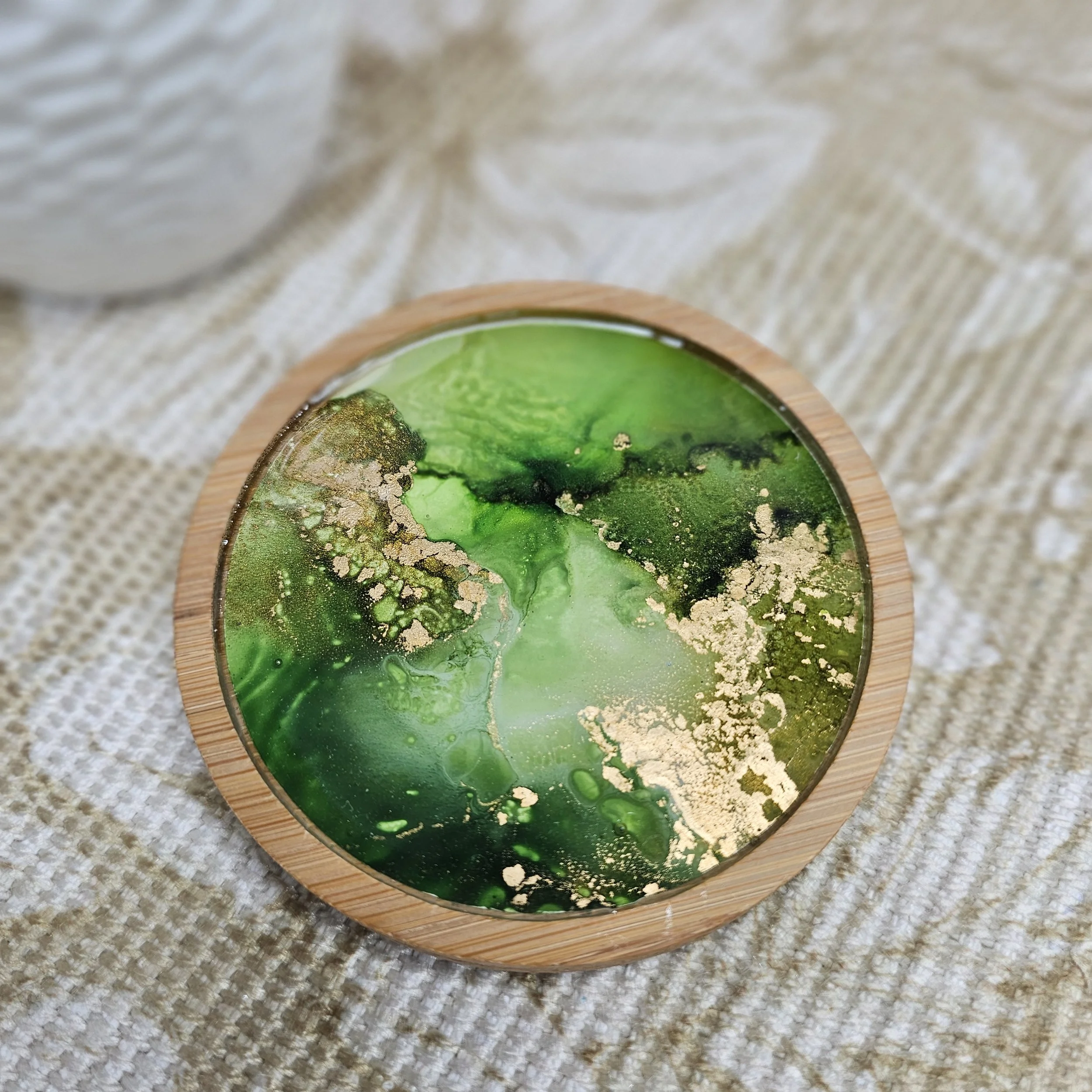 • Each 60mm glass ornament is a unique piece of art, hand-painted using vibrant abstract alcohol inks. They feature a gold cap and comes complete with a hand-tied satin ribbon, ready for display.