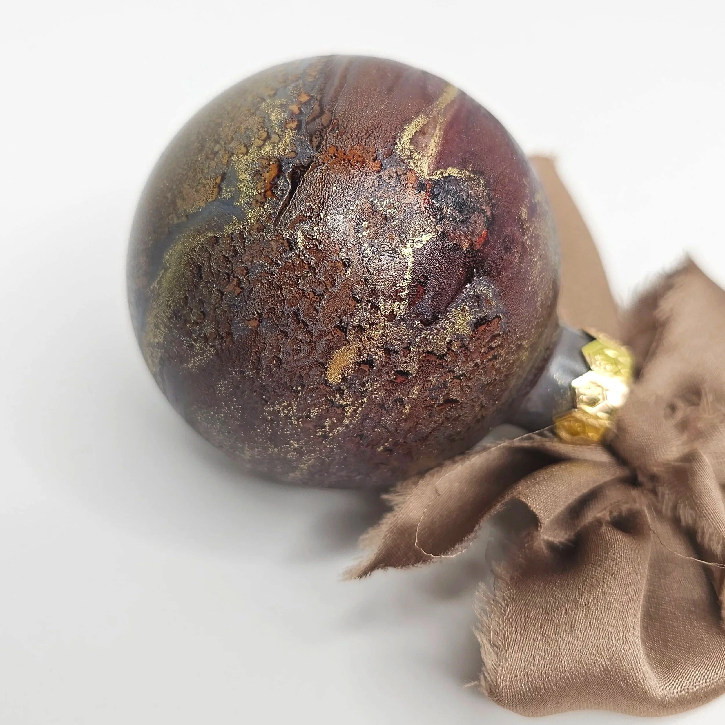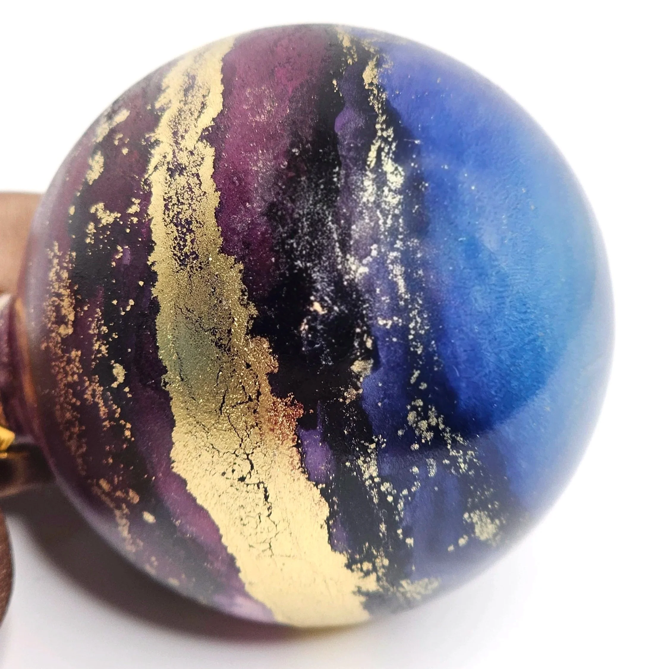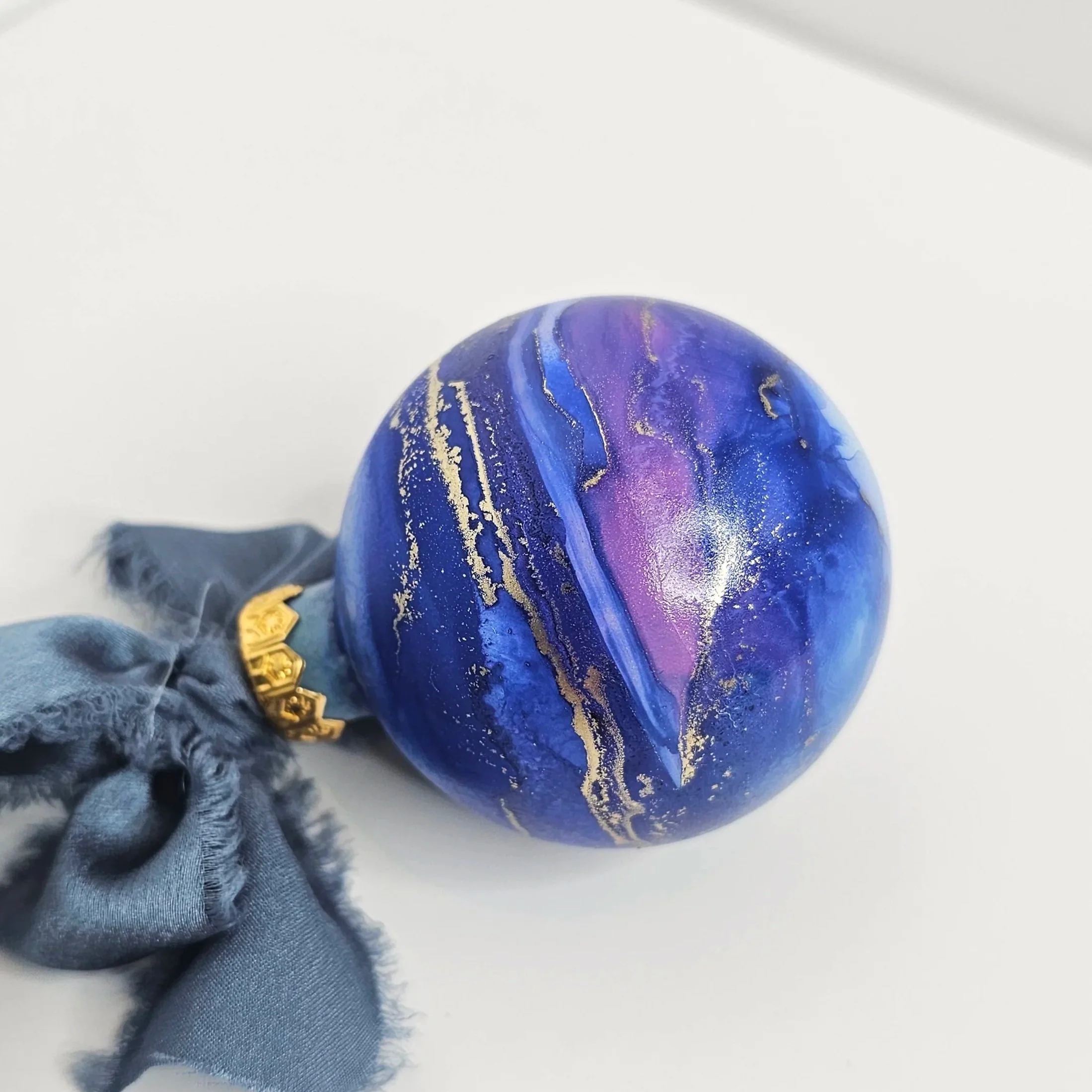 • This 2025 collection was born from a daydream. Each bauble was initially treated as mini-planets, becoming a canvas to explore the textures, ripples, and rings in the galaxies. The collection features some earthy, darker tones, but as it grew, different patterns and more vibrant colours began to evolve.