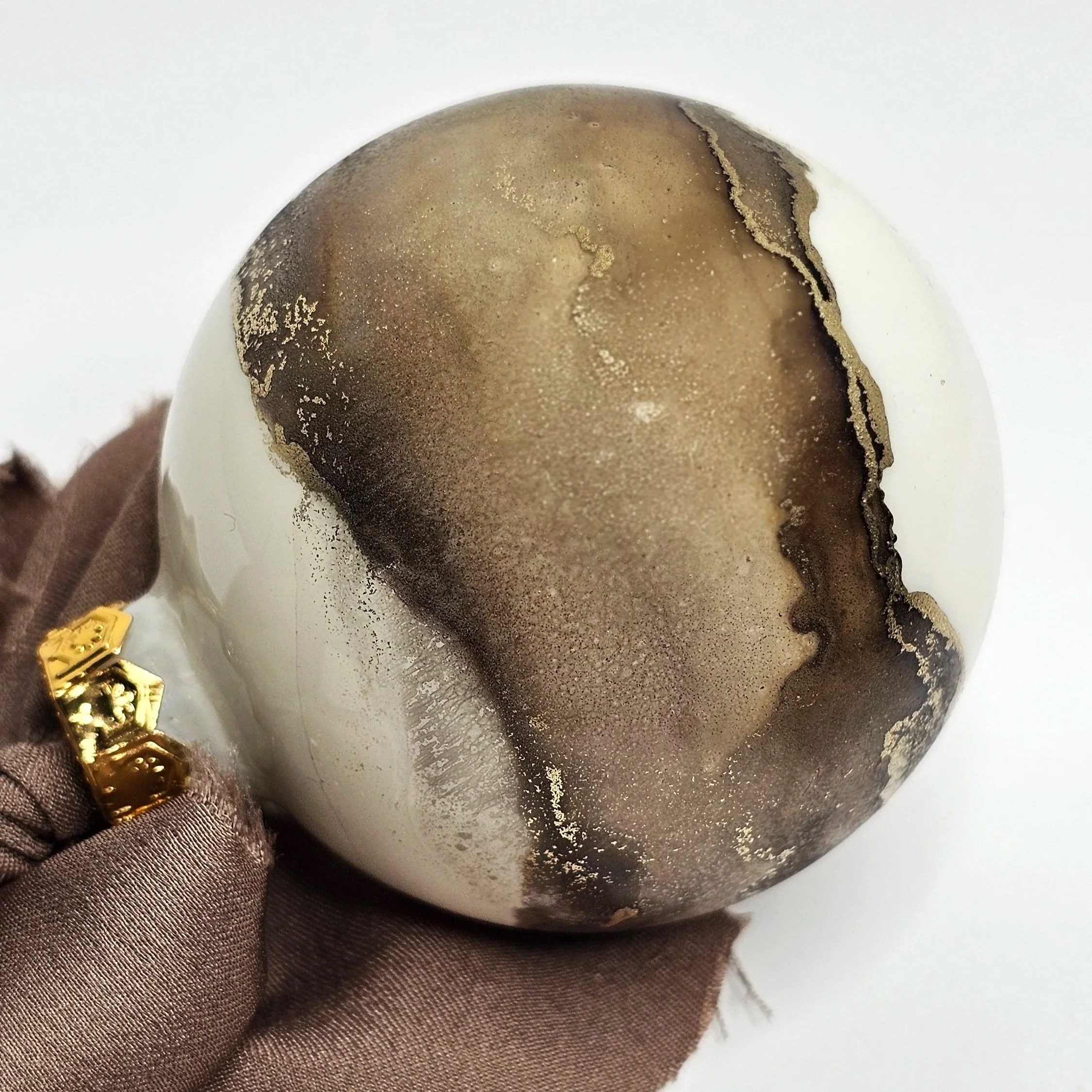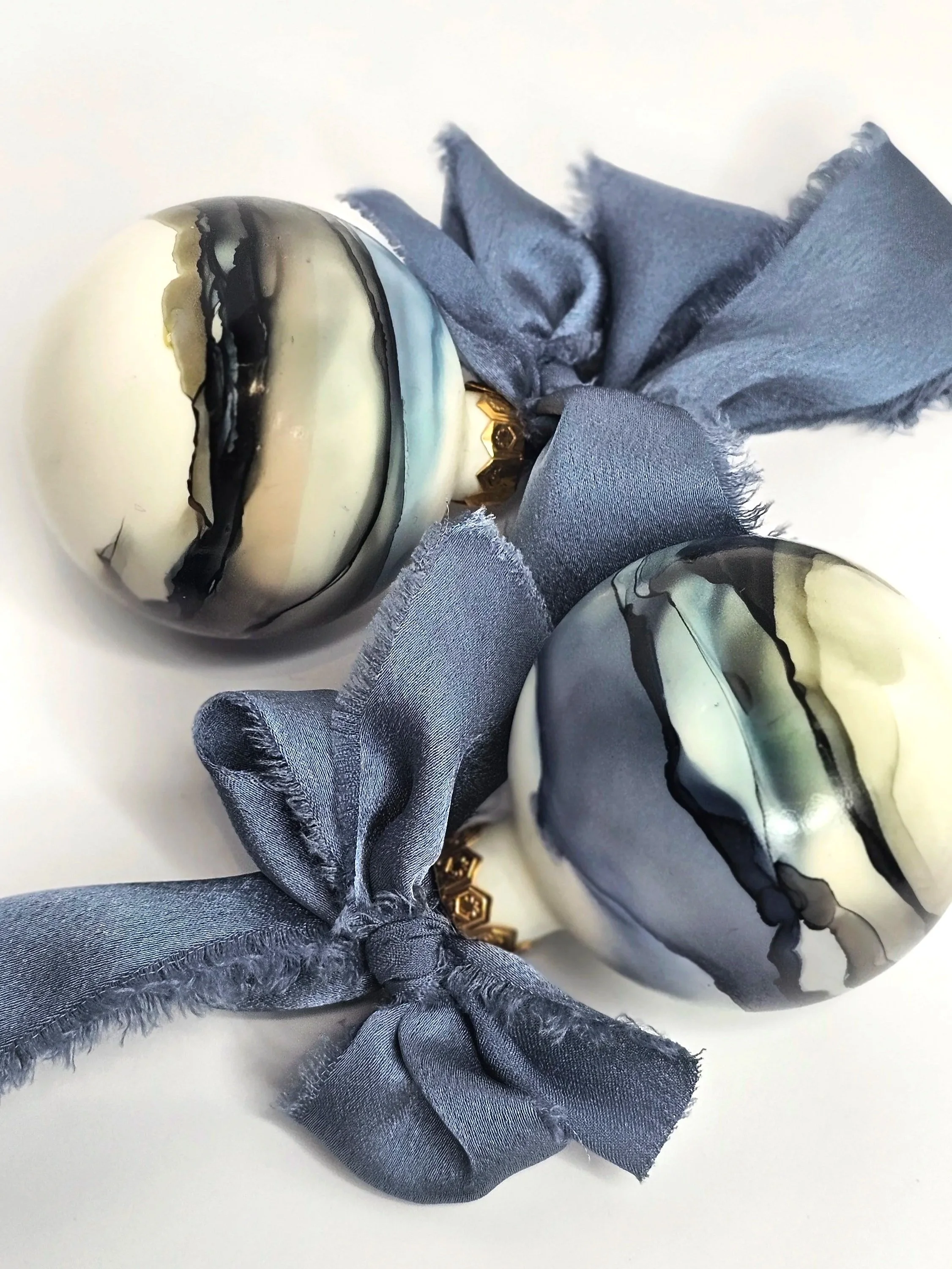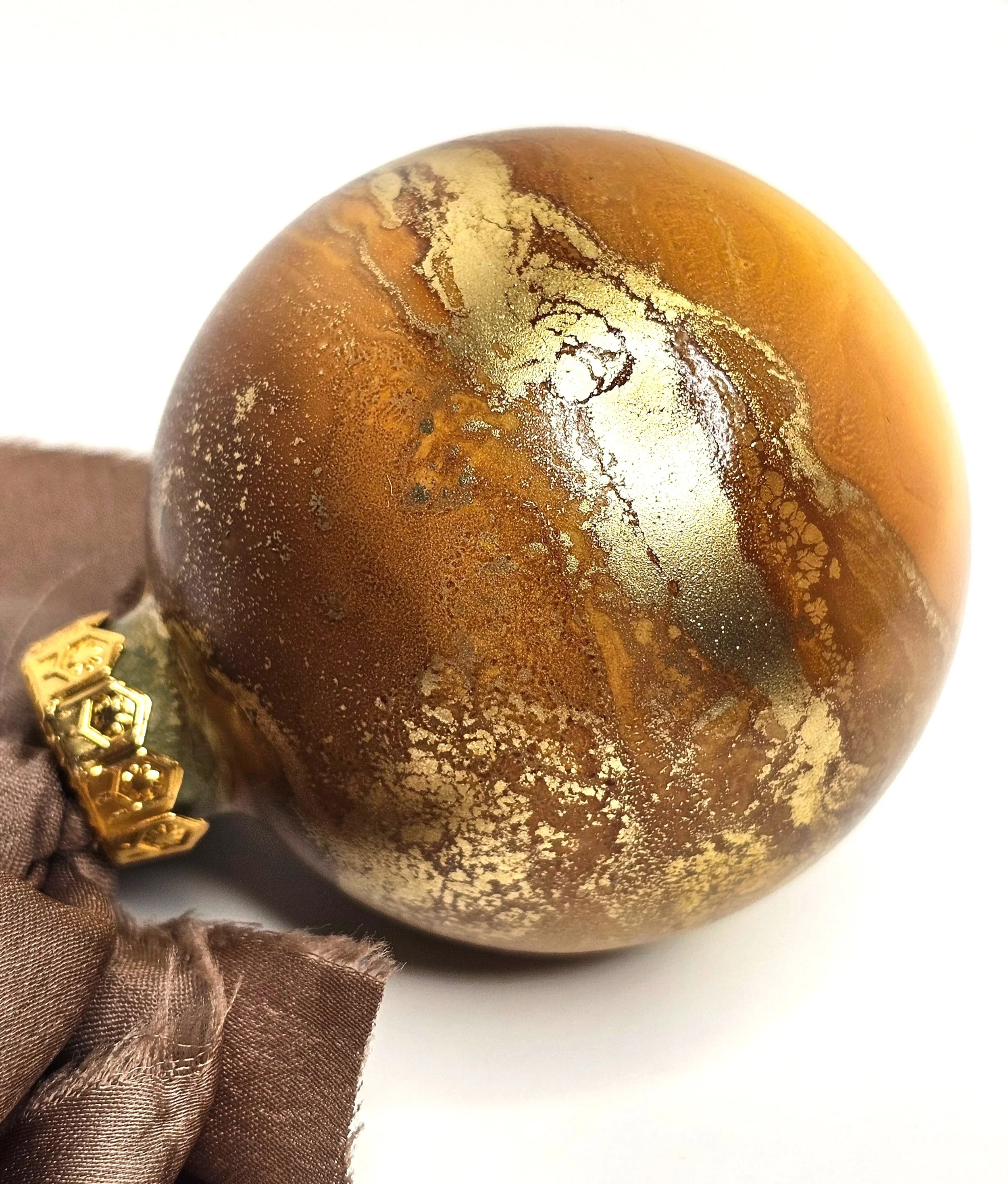 • This 2025 collection was born from a daydream. Each bauble was initially treated as mini-planets, becoming a canvas to explore the textures, ripples, and rings in the galaxies. The collection features some earthy, darker tones, but as it grew, different patterns and more vibrant colours began to evolve.